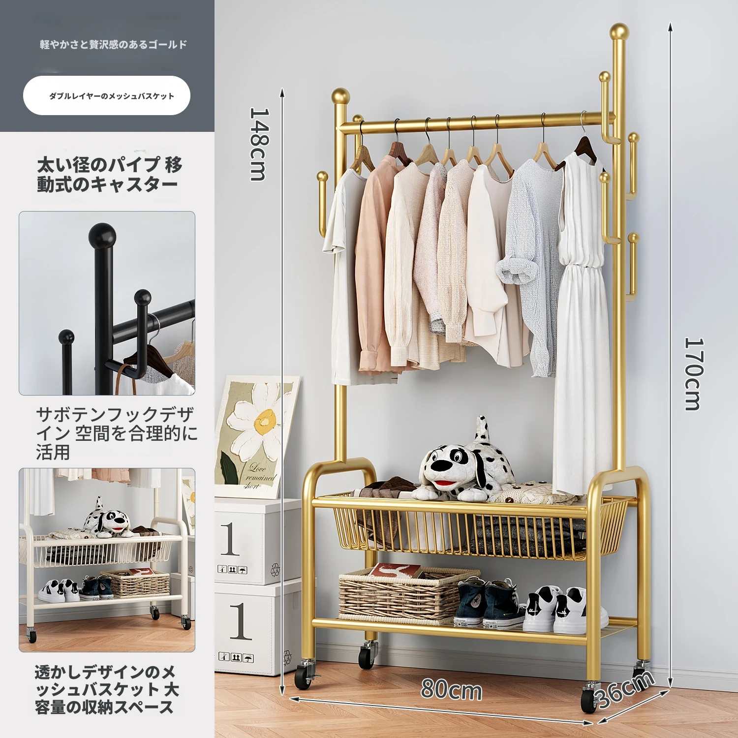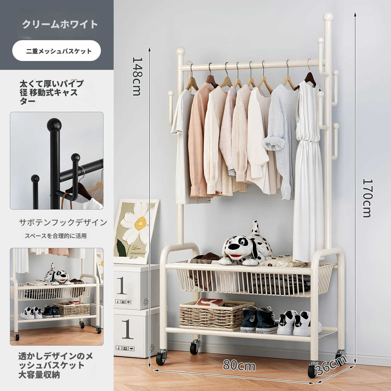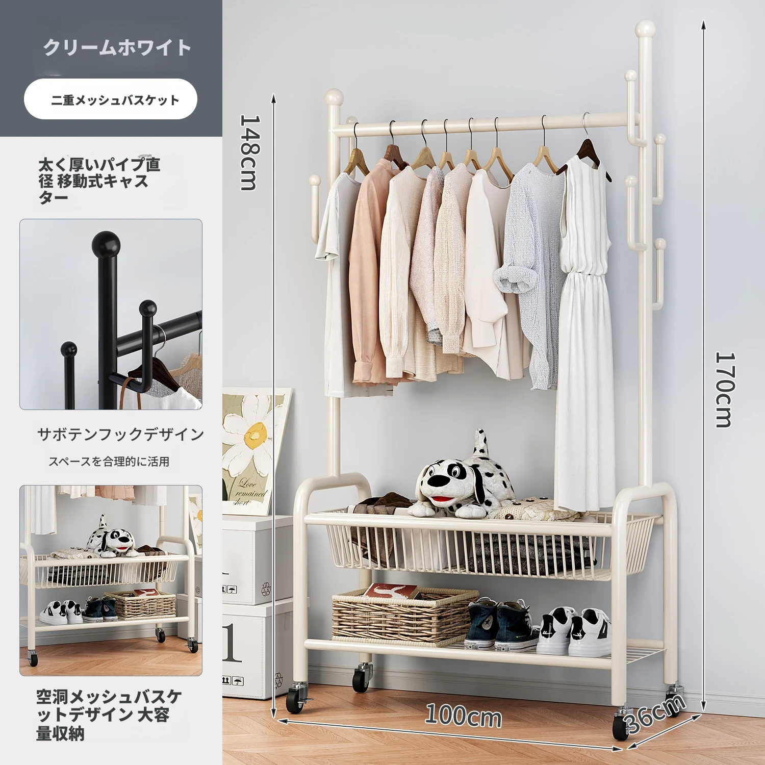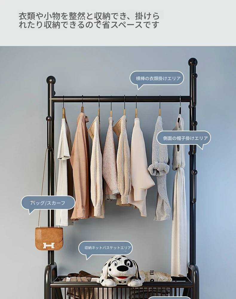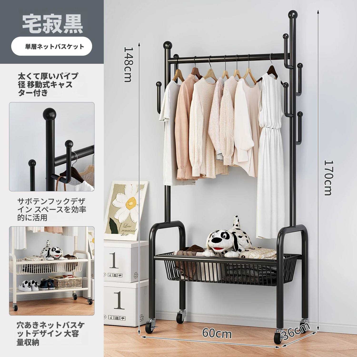 簡単移動式コートハンガー|家庭・寮用・バルコニー・寝室向け!衣類を美しく収納できる衣服干しラック【スマート収納でスペース節約】