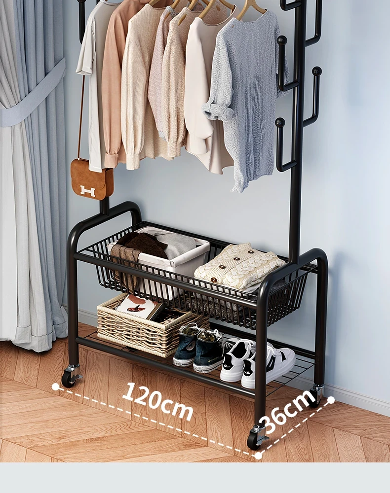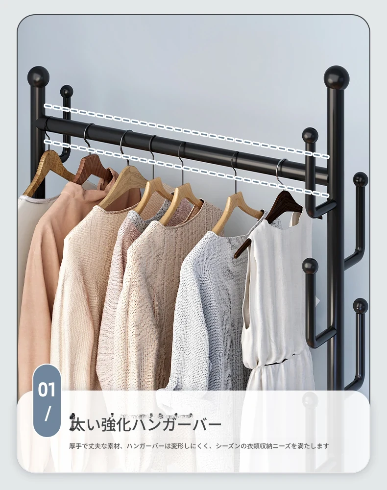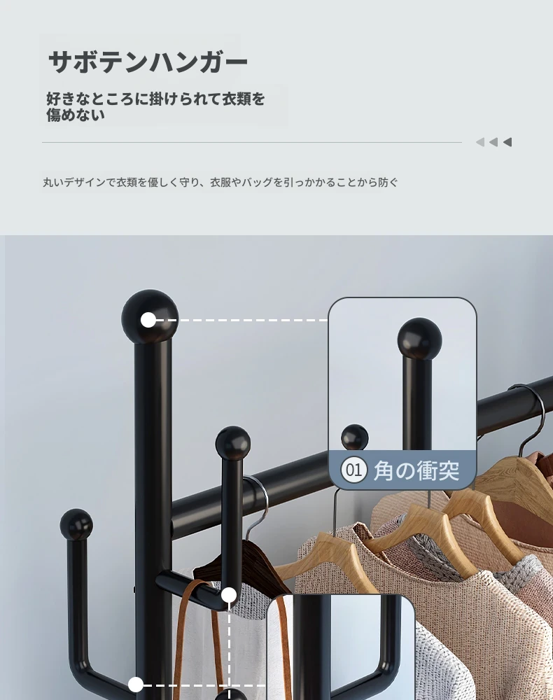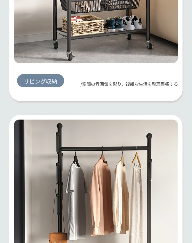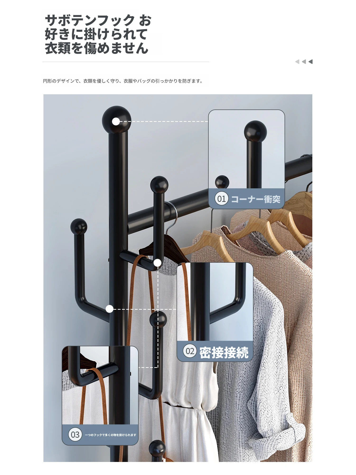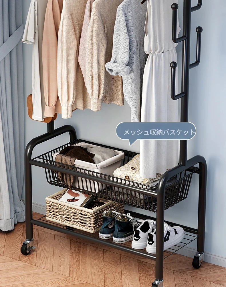 簡単移動式コートハンガー|家庭・寮用・バルコニー・寝室向け!衣類を美しく収納できる衣服干しラック【スマート収納でスペース節約】