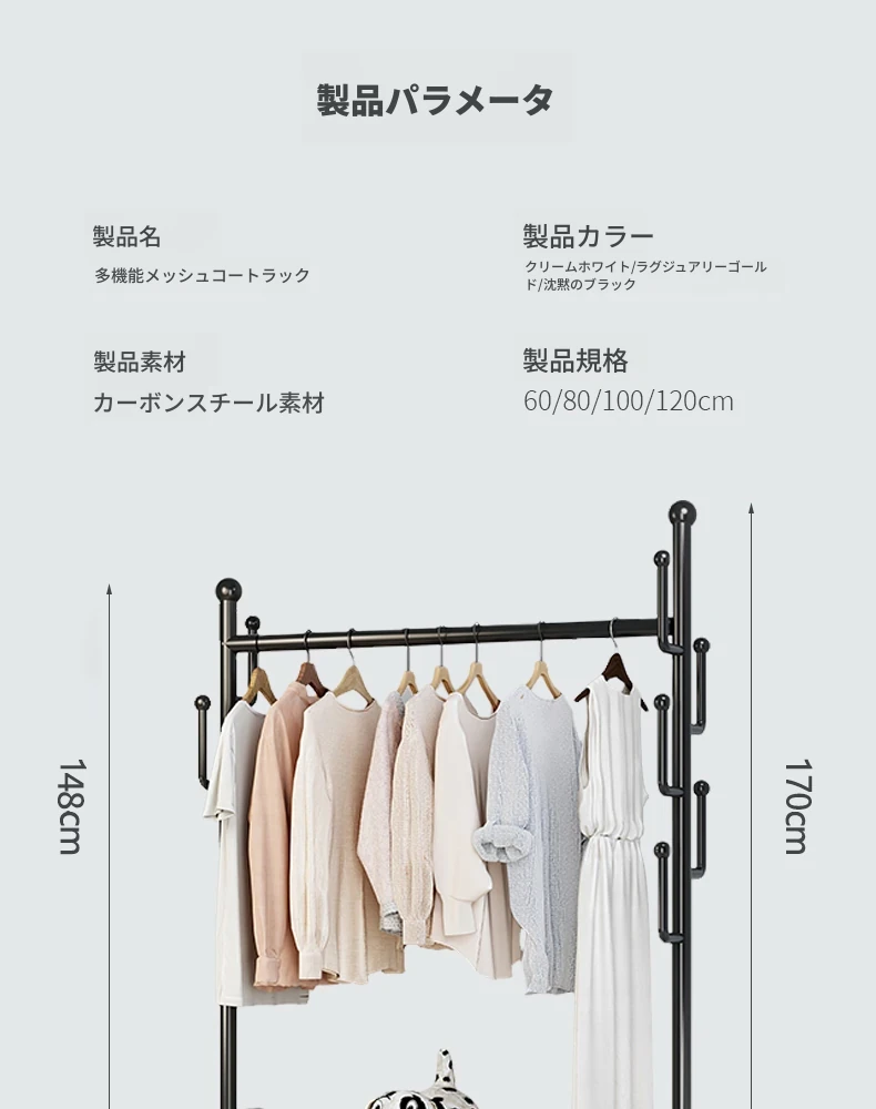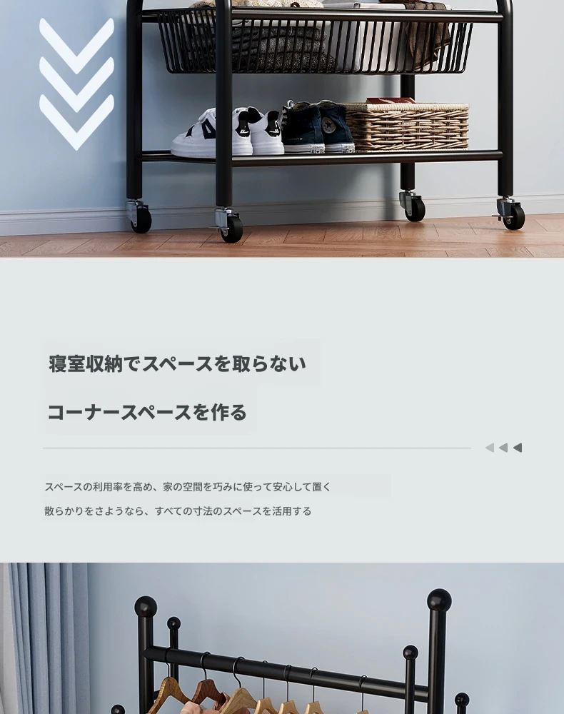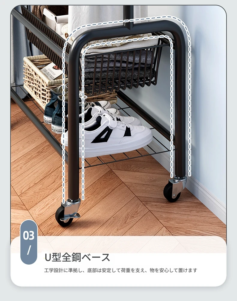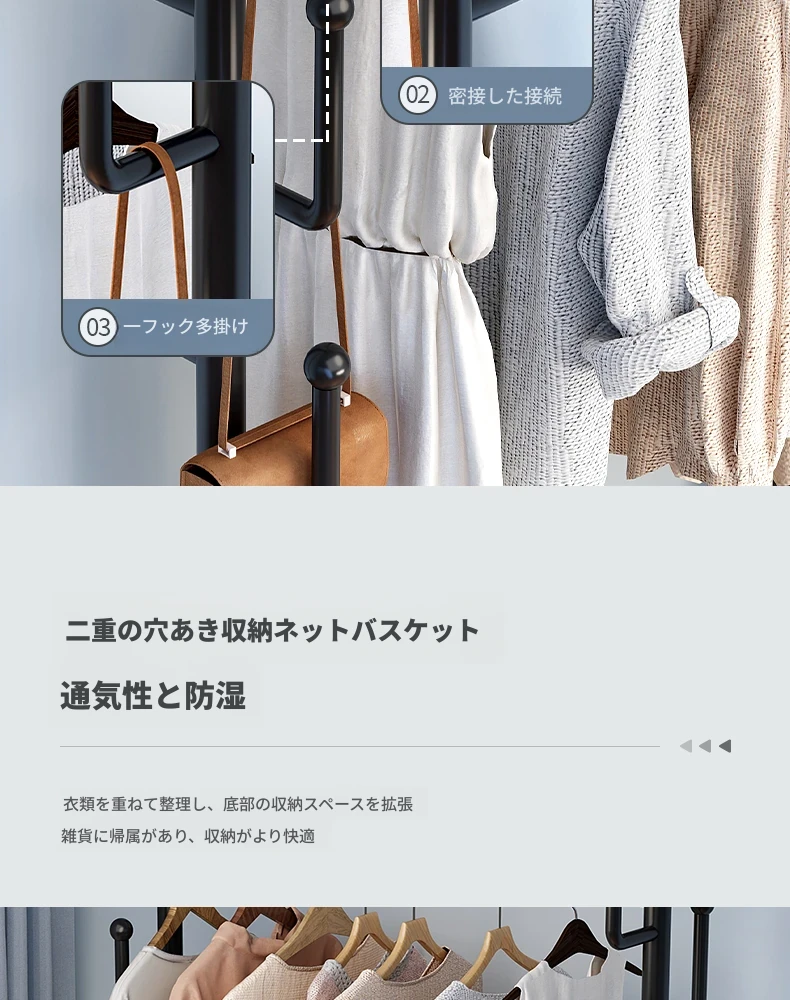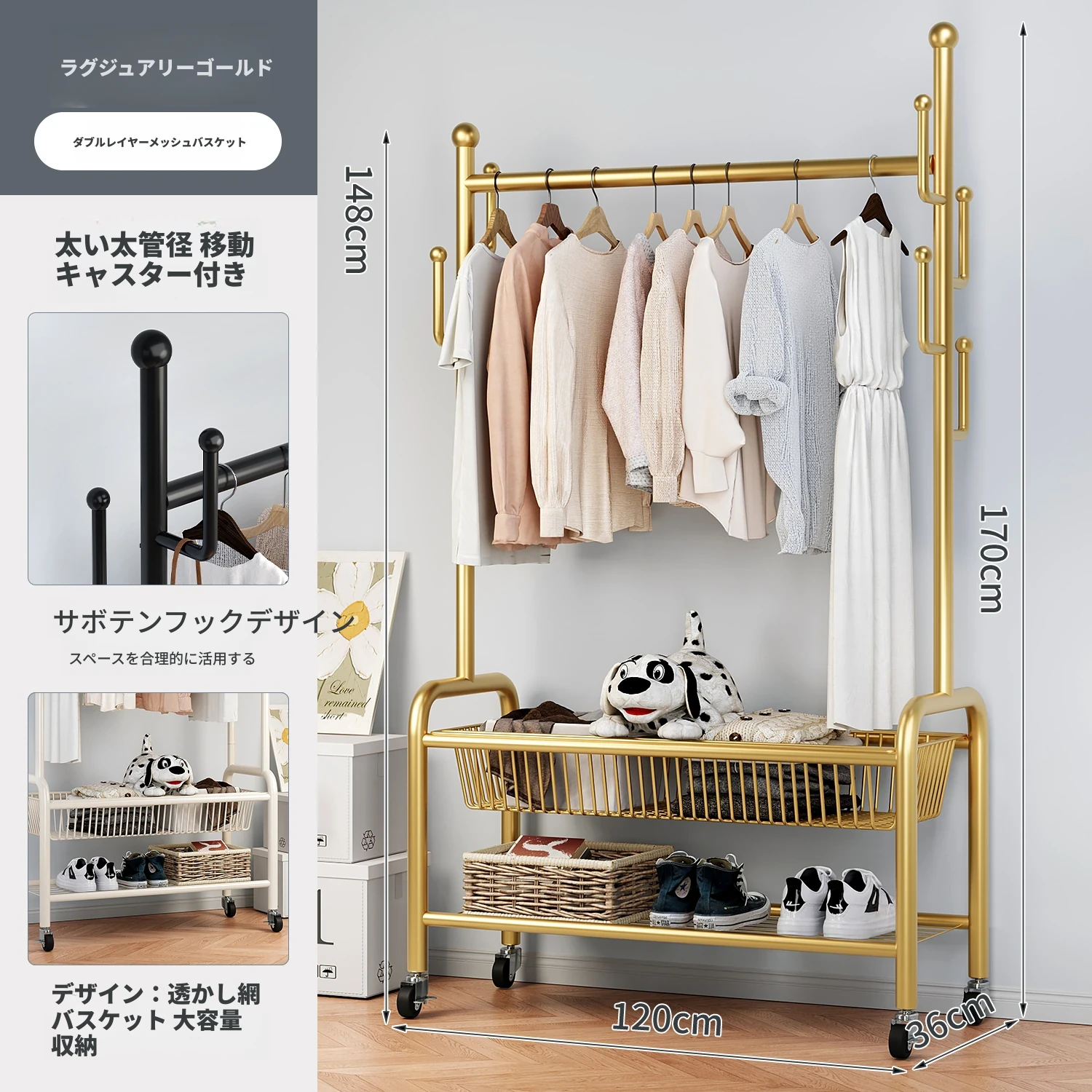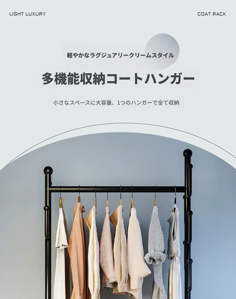 簡単移動式コートハンガー|家庭・寮用・バルコニー・寝室向け!衣類を美しく収納できる衣服干しラック【スマート収納でスペース節約】
