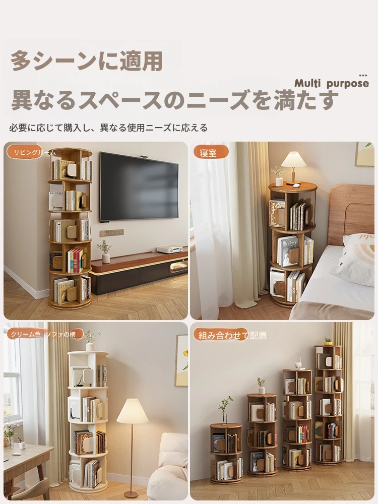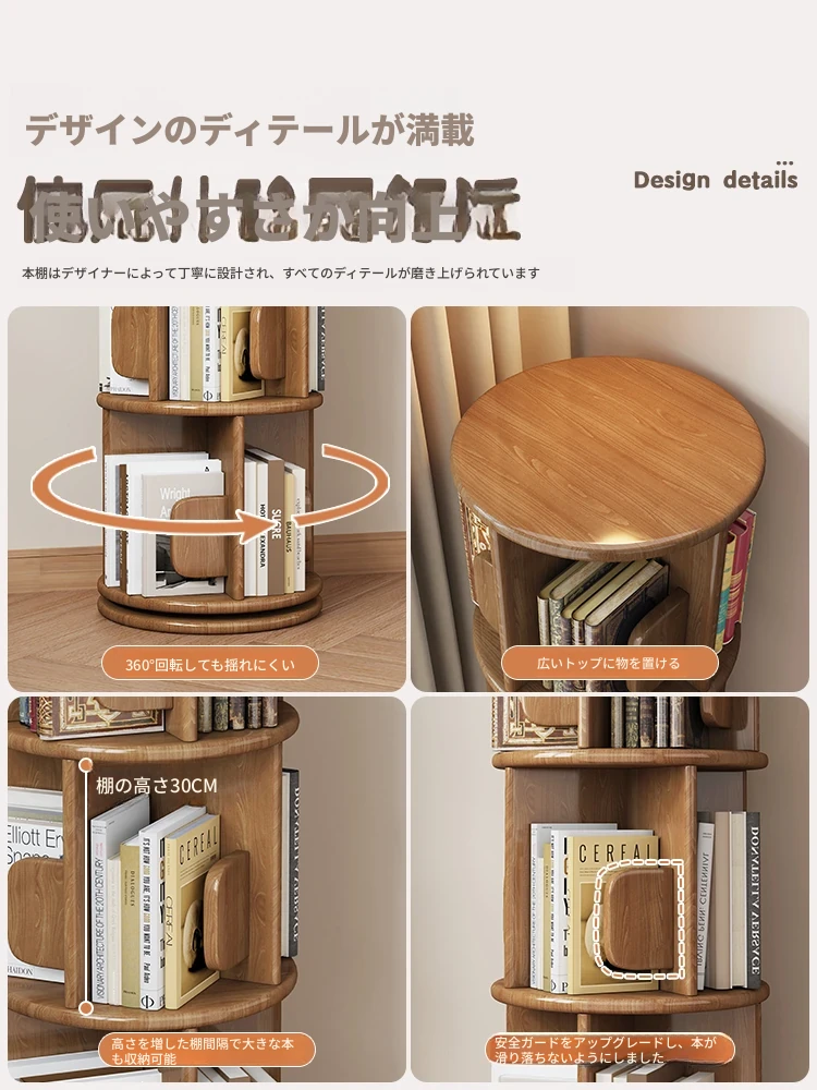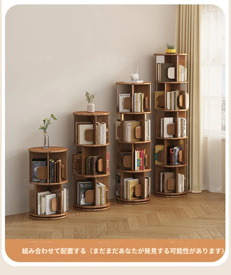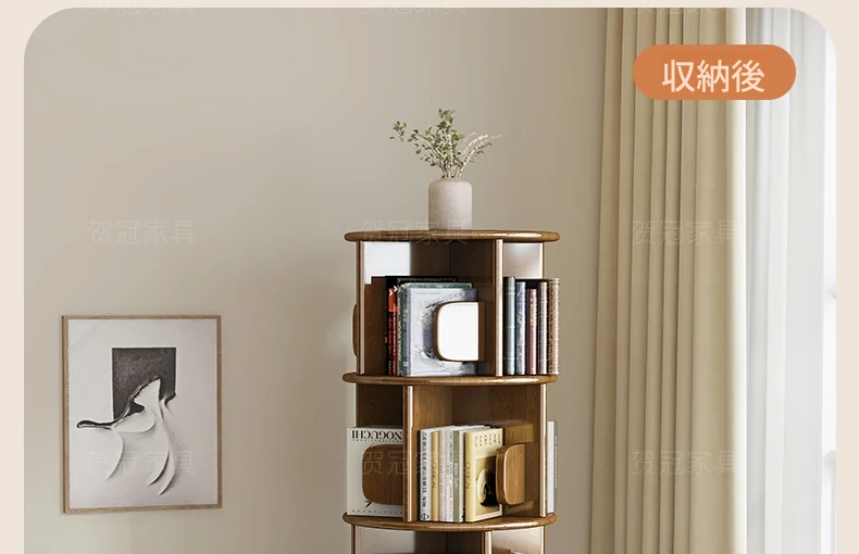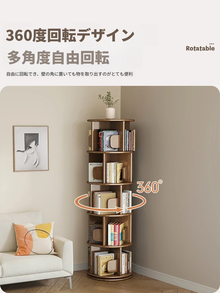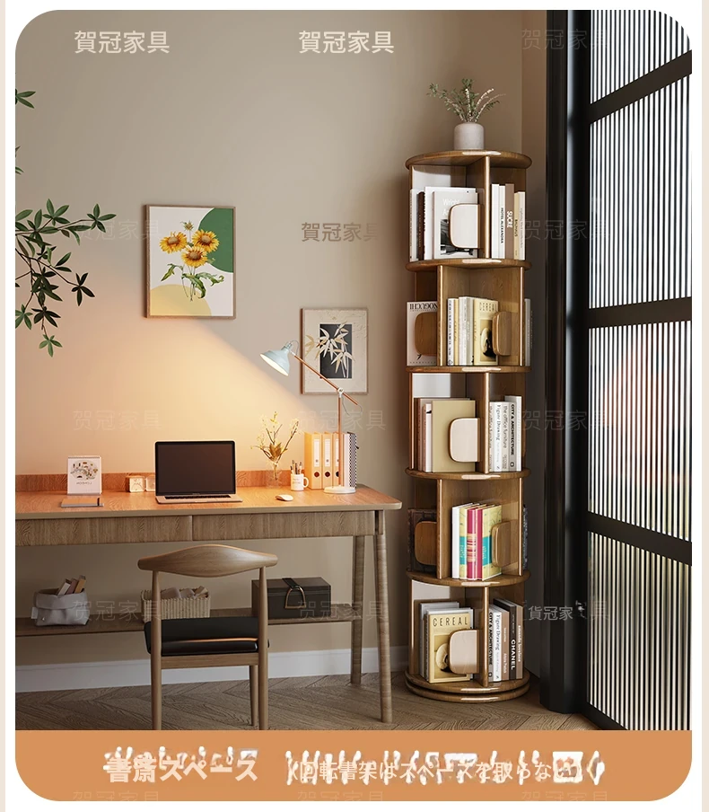 回転式デスク本棚収納ラック - 本や資料を整理整頓!おしゃれな実木製で、雑誌や書籍をスマートに収納。お部屋のインテリアにもぴったりです!