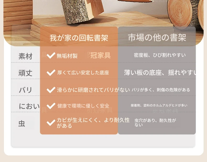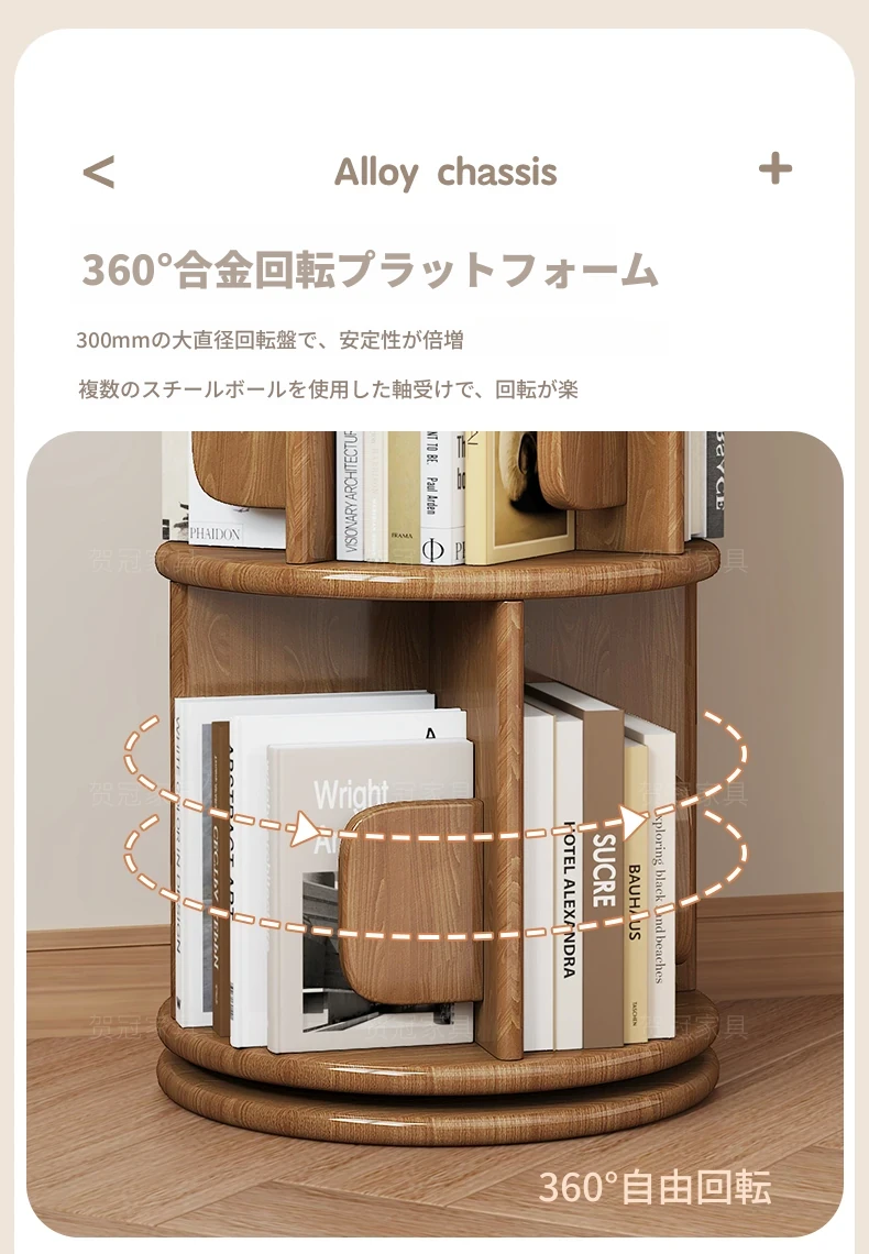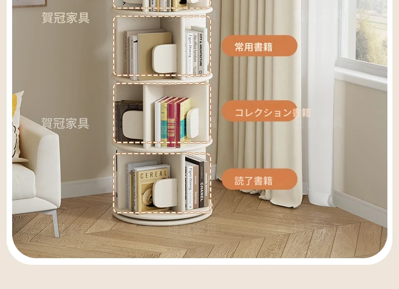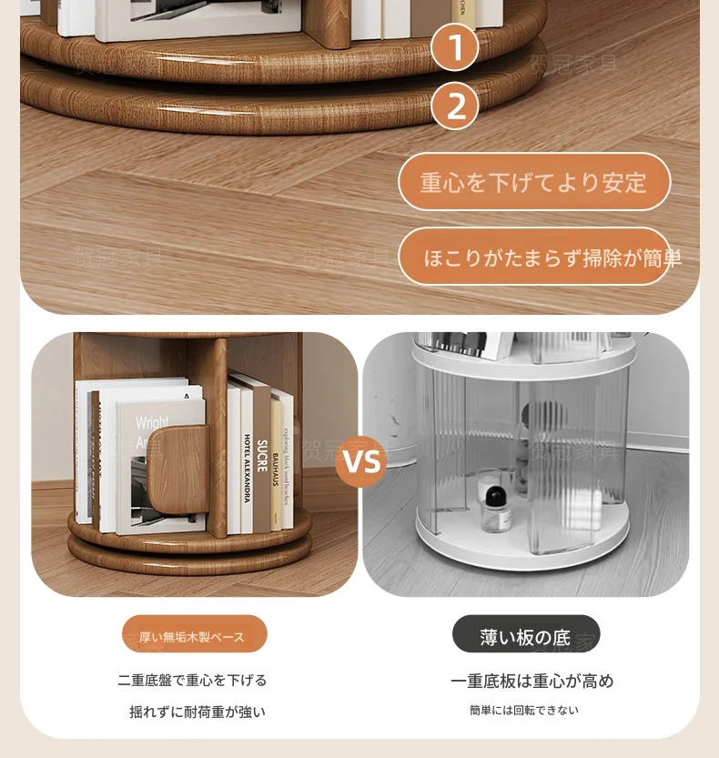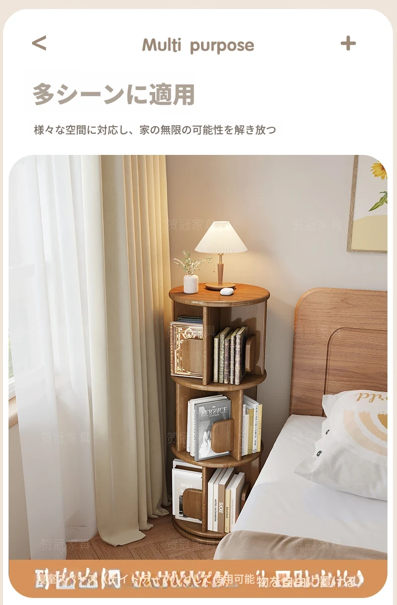 回転式デスク本棚収納ラック - 本や資料を整理整頓!おしゃれな実木製で、雑誌や書籍をスマートに収納。お部屋のインテリアにもぴったりです!