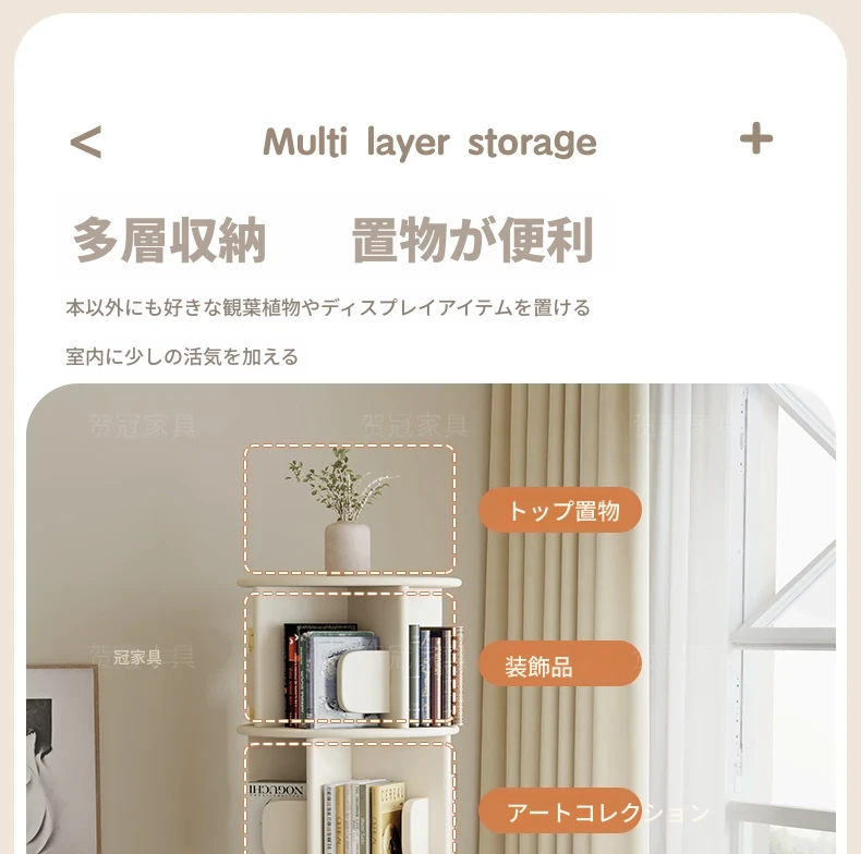 4段回転書棚-ホワイト色【強化棚板+書棚ストッパー】