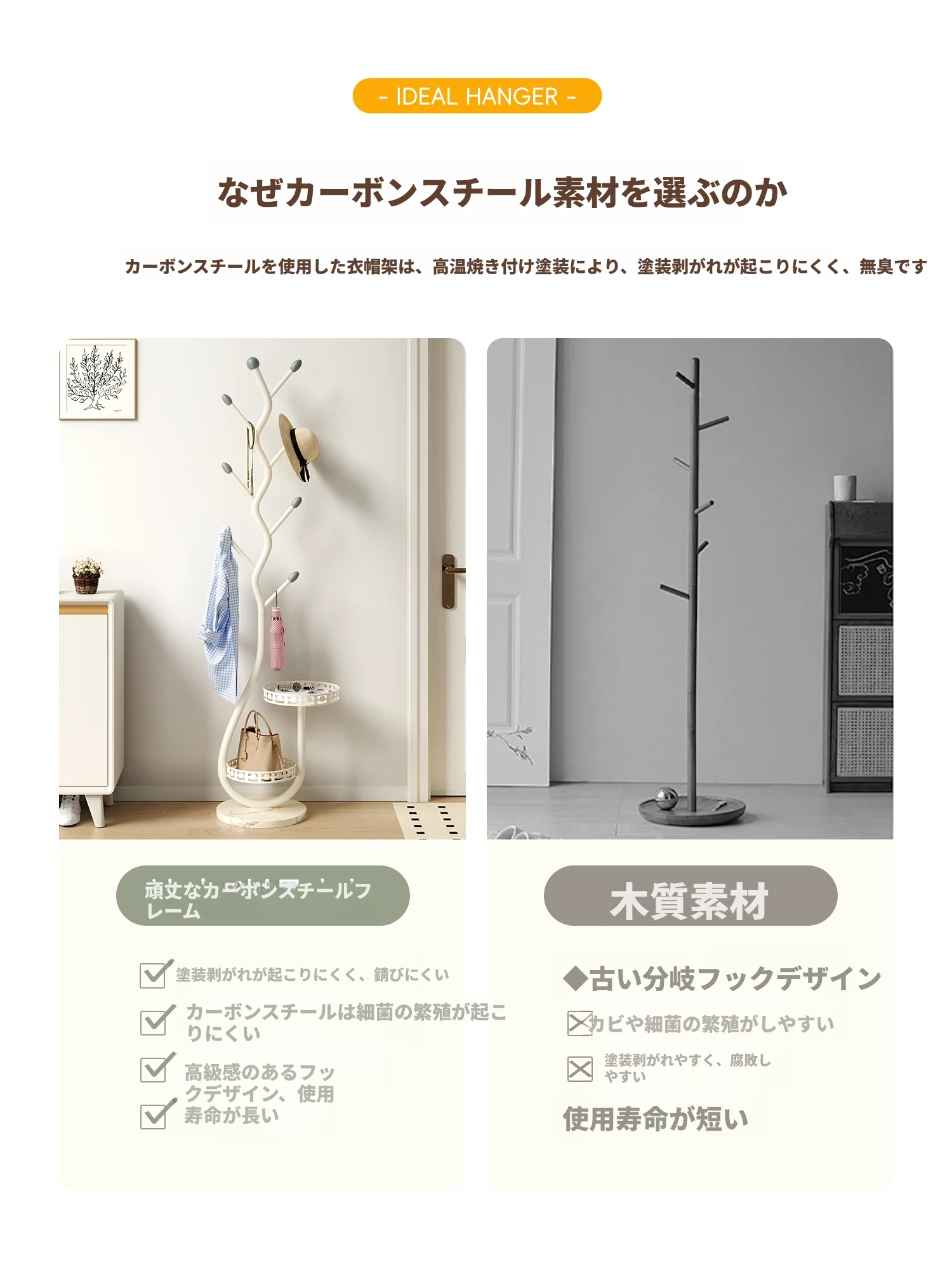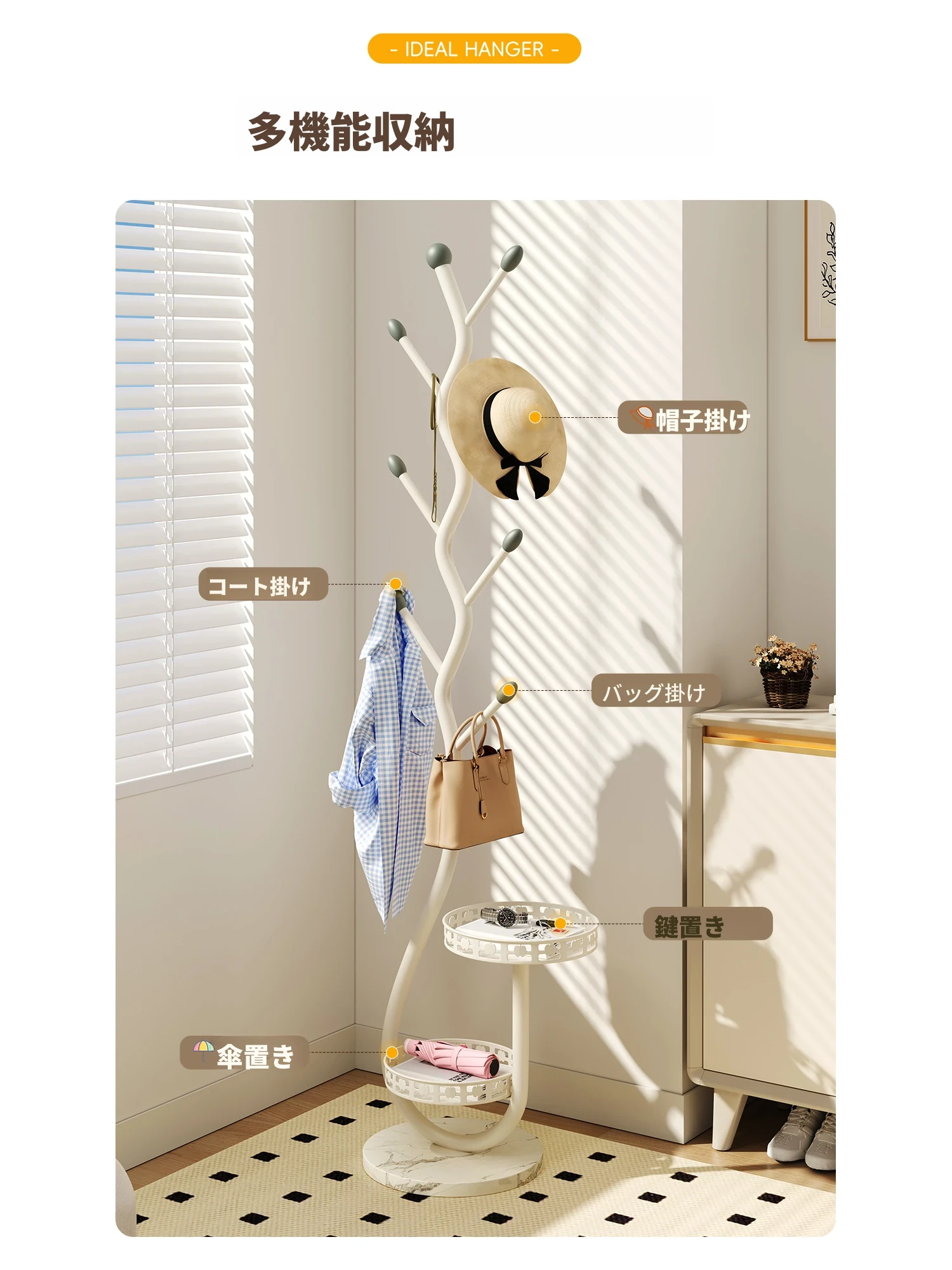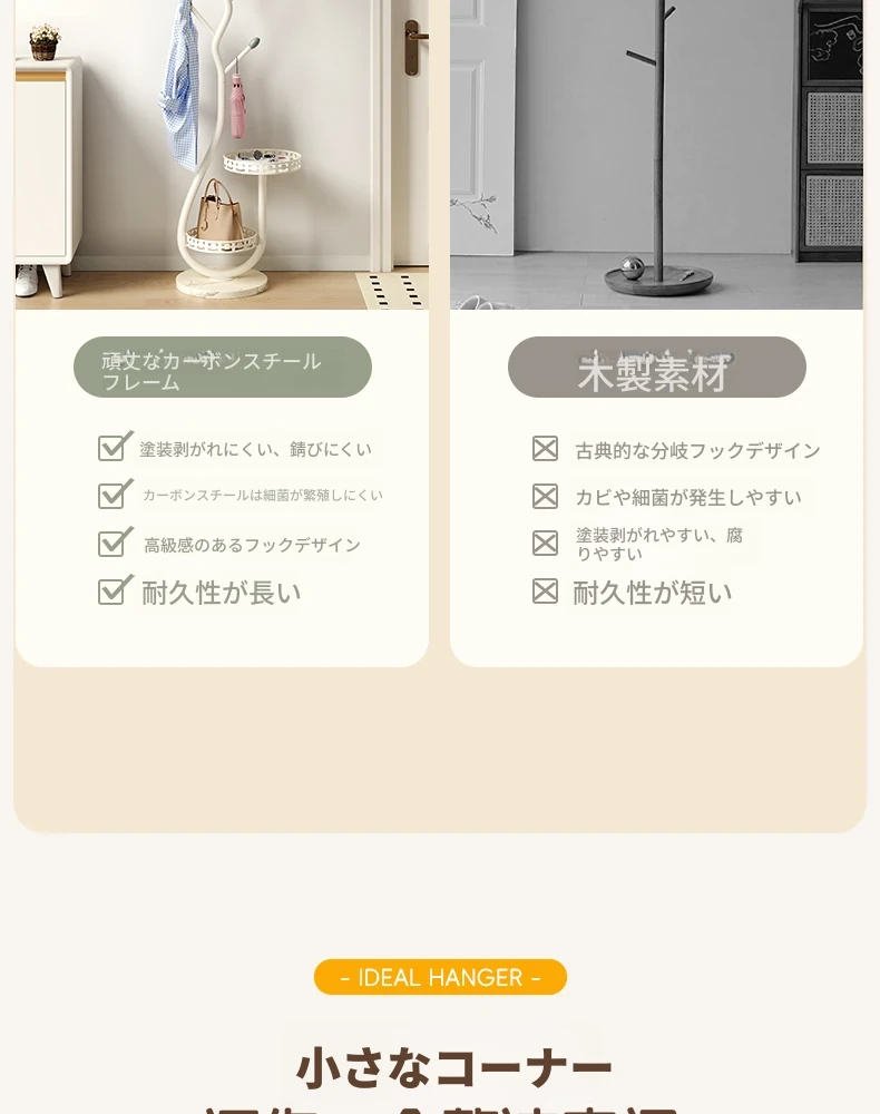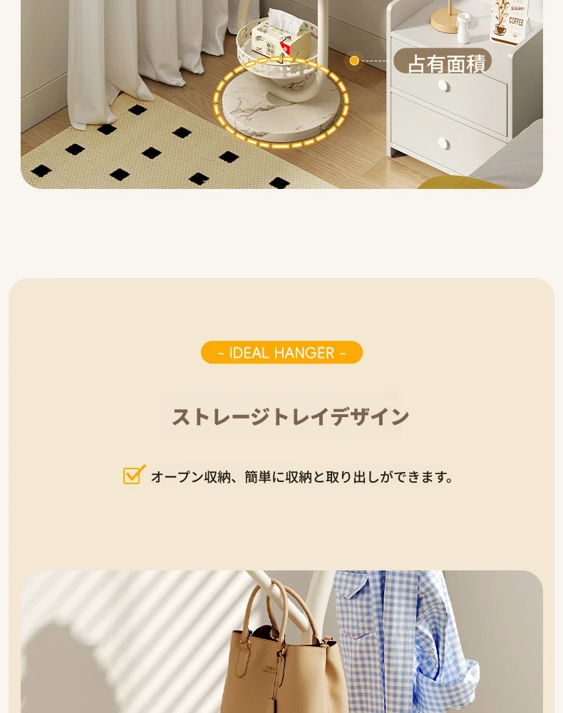 スタイリッシュなアイアン製のスタンドコートラック - 多機能な衣類掛け、収納スペースを有効活用!衣服や帽子をおしゃれに収納するためのマストアイテム!