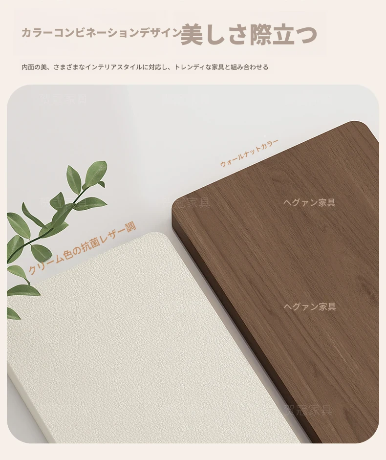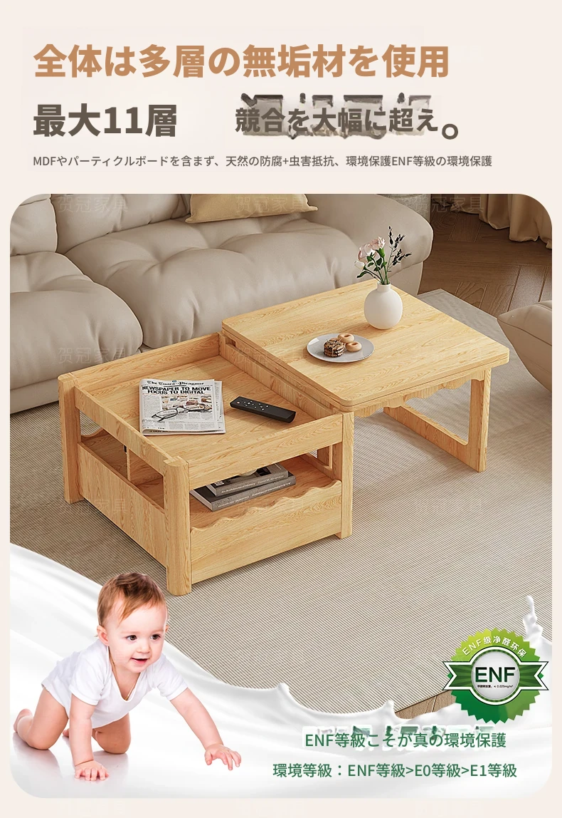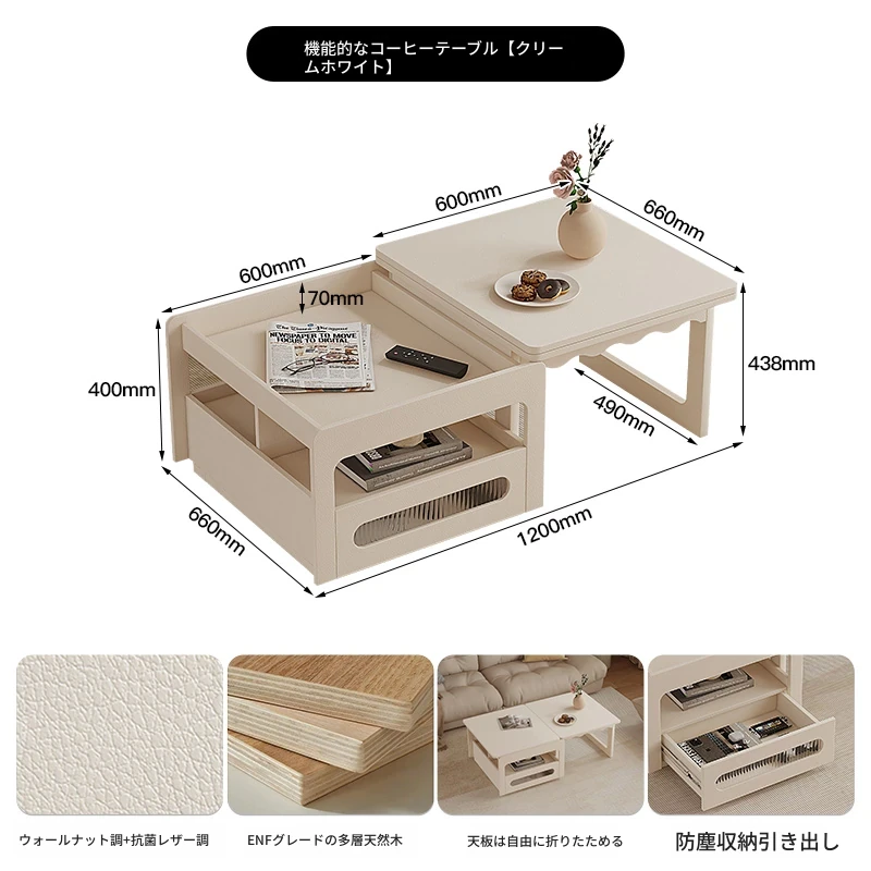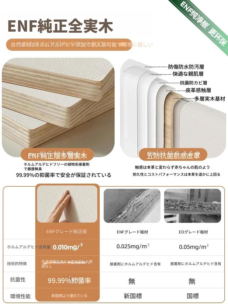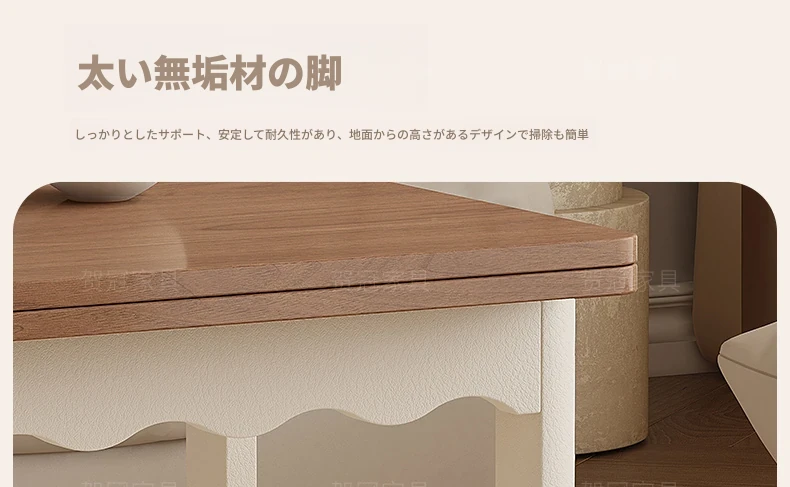 【皮纹ホワイト】上テーブル+下テーブル ENF級無垢材
