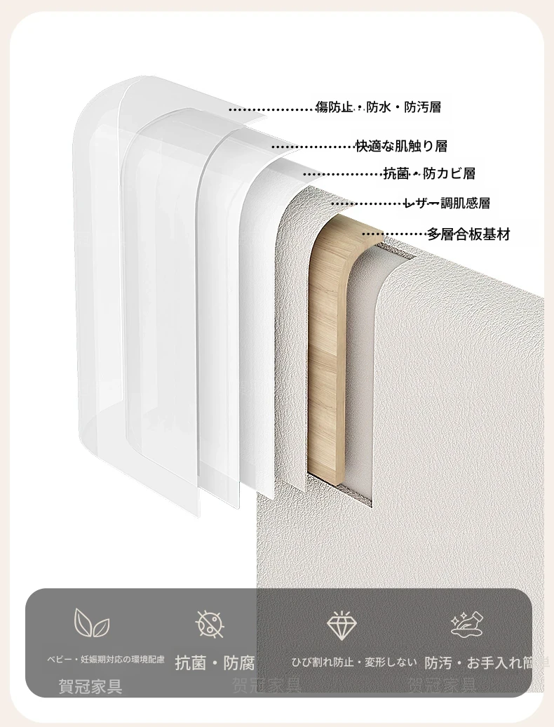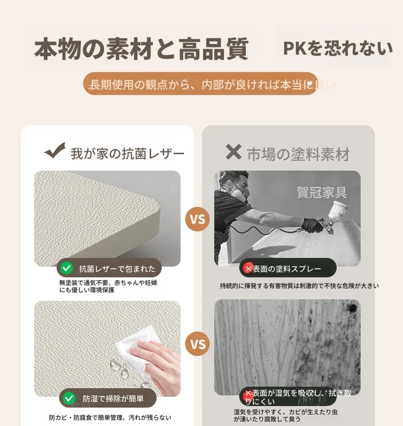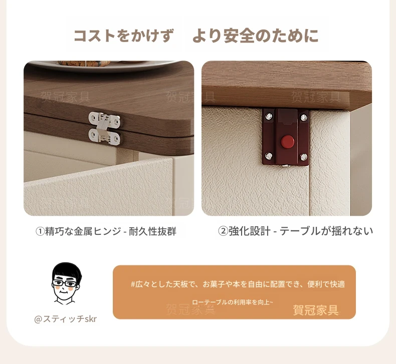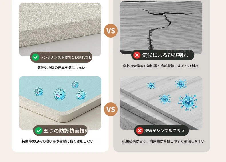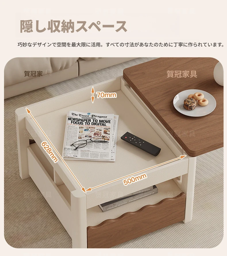 【皮纹ホワイト】上テーブル+下テーブル ENF級無垢材